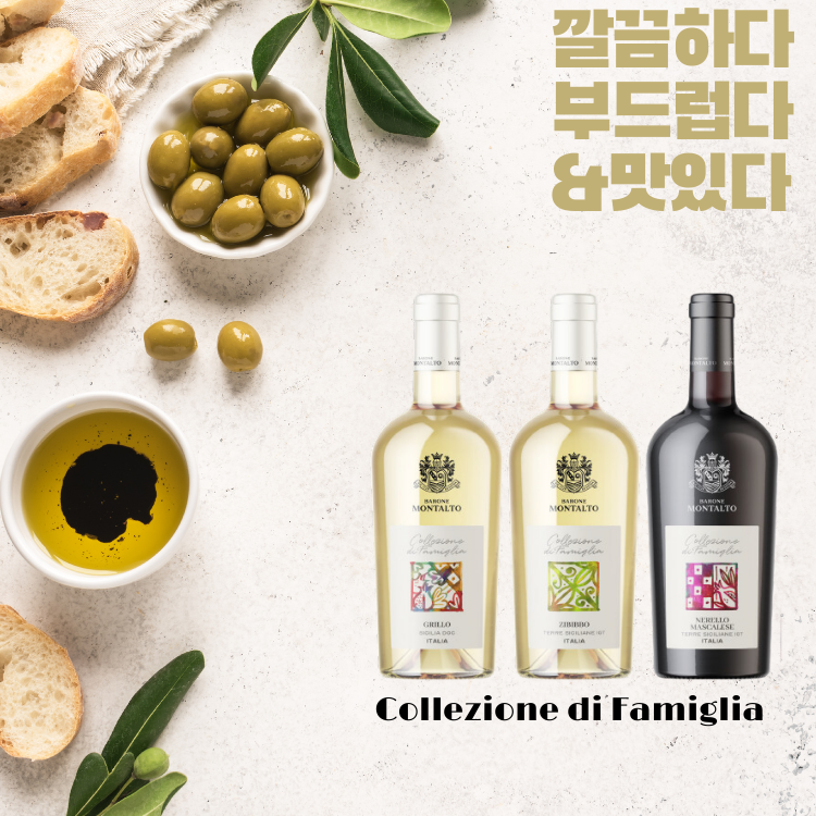 몬탈토 와이너리가 선보이는 Collezione di Famiglia 라인은 시칠리 토착품종 뿐만 아니라 멜롯, 쉬라, 비오니에 등 쉽게 접할 수 있는 친숙한 인터품종을 사용하여 누구나 쉽게 즐길 수 있는 와인입니다.